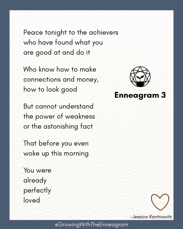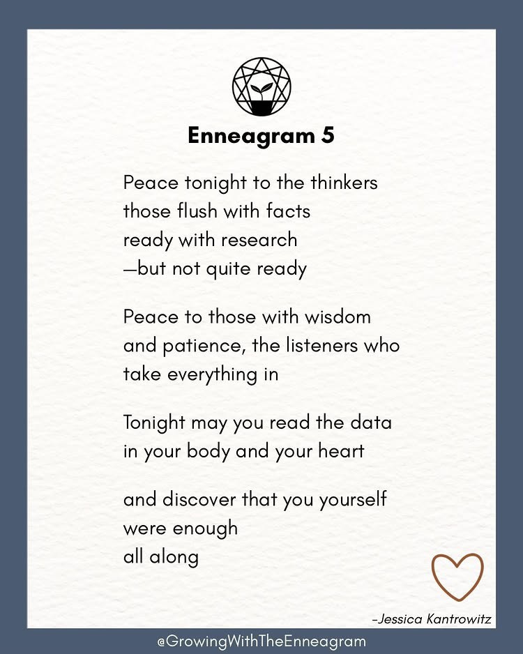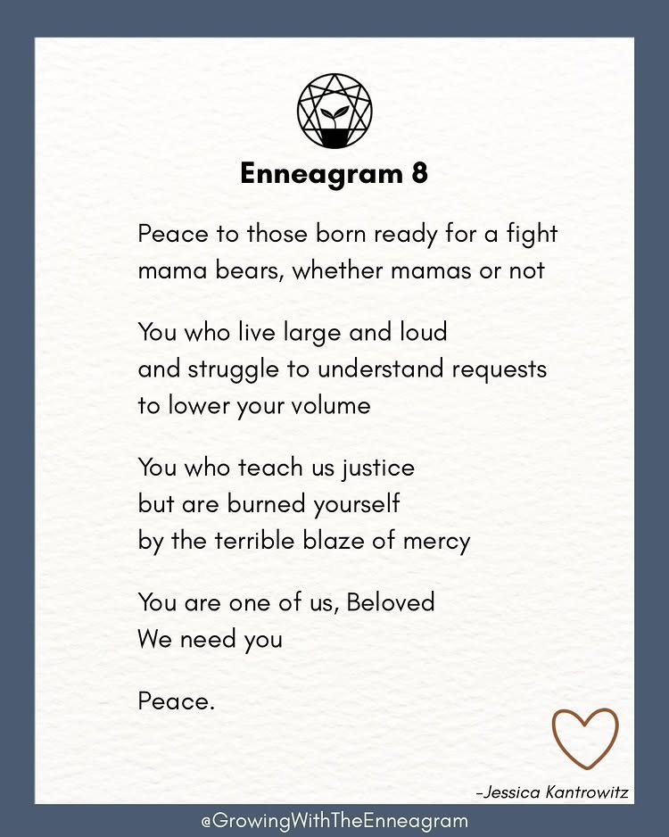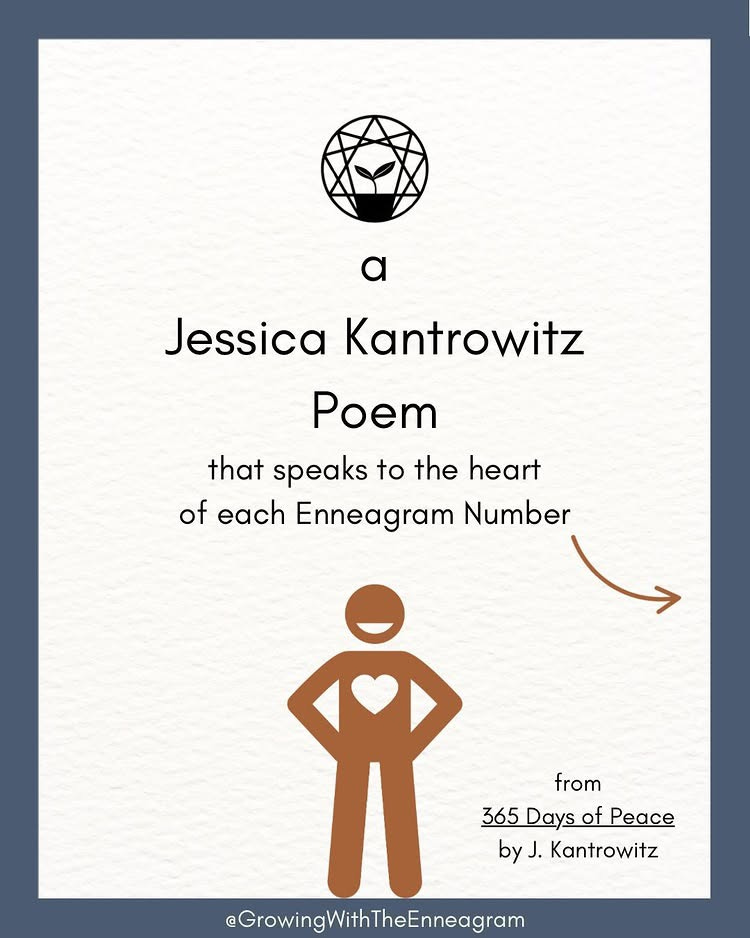 When I was writing the daily benedictions that would become 365 Days of Peace, I secretly wrote some of them to specific Enneagram types. They’re not labeled in the book, but if you look in the index you’ll see which ones go with which. So I thought it would be fun to reach out to TJ to see if she wanted to do a collab post, and she said yes! She even offered to put my poems in her signature graphics.
